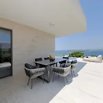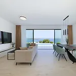 Eine Terrasse bietet zudem einen Ausblick aufs Meer. Die Villa verfügt über ein Badezimmer mit einer begehbaren Dusche. Es werden auch Handtücher angeboten.